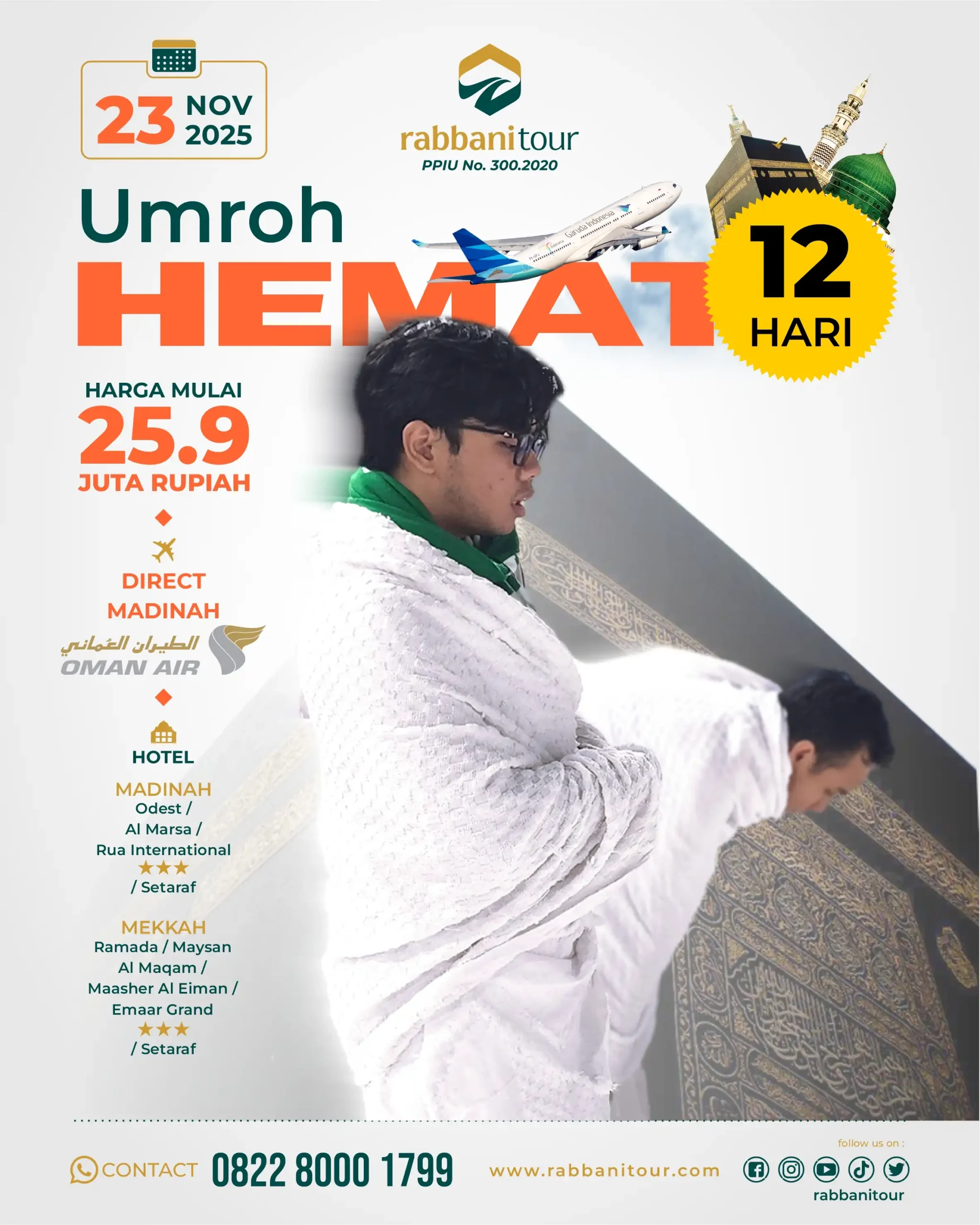Rabbanitour menyediakan banyak pilihan tanggal keberangkatan dengan pilihan paket dan maskapai penerbangan untuk menjamin kenyamanan perjalanan umroh Anda dan keluarga.