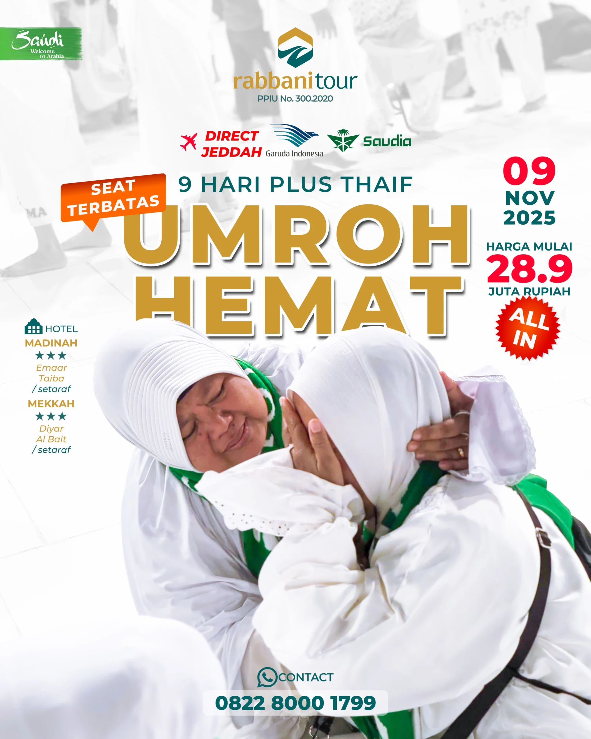 9 November 2025 – Umroh Hemat Direct 9 Hari (ALL IN)